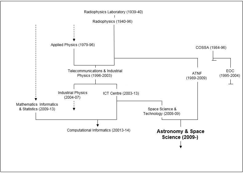 In December 2009, the new Division, CSIRO Astronomy and Space Science (CASS), was formed which brought together CSIRO’s radio astronomy capabilities (the Australia Telescope National Facility), NASA Operations (including the Canberra Deep Space Communication Complex), CSIRO Space Sciences and Technology; and the CSIRO Boeing Advisor. NASA Operations had had a very diverse history within CSIRO, having been part of a number of Divisions over the years. In July 2014, in a major restructuring of CSIRO when most Divisions were renamed Flagships, CSIRO Astronomy and Space Science did not become a Flagship but remained an independent business unit in the broader grouping of National Facilities and Collections.