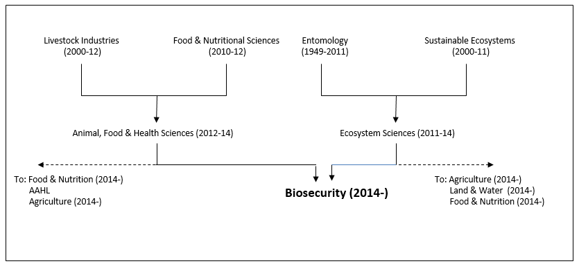 In a major restructuring of CSIRO in 2014, Divisions were replaced by Flagships as the organization’s major operating units. The Biosecurity flagship was formed by transferring staff from two Divisions. Sixty one staff came from the former Division of Animal, Food and Health Sciences and 29 staff from the former Division of Ecosystem Sciences. The histories of these two former Divisions can be found at the links provided above.