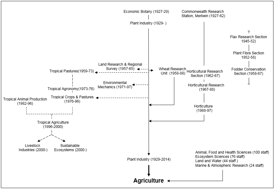 | Tropical Crops and Pastures (1976-96) | Edward Mark Hutton (1976-77) Edward Frederick Henzell (1977-87) Raymond John Jones (Acting 1988) Robert John Clements (1989-95) John Arthur Taylor (1996) |